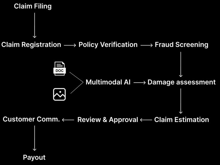 Claims are the most time-consuming workflow in Insurance firms and MGAs. Today most of the claims are handled manually or with outdated softwares. Our agentic AI automates 90% of the workflow, unlocking up to 3x profitability across property, car, and travel insurance lines.